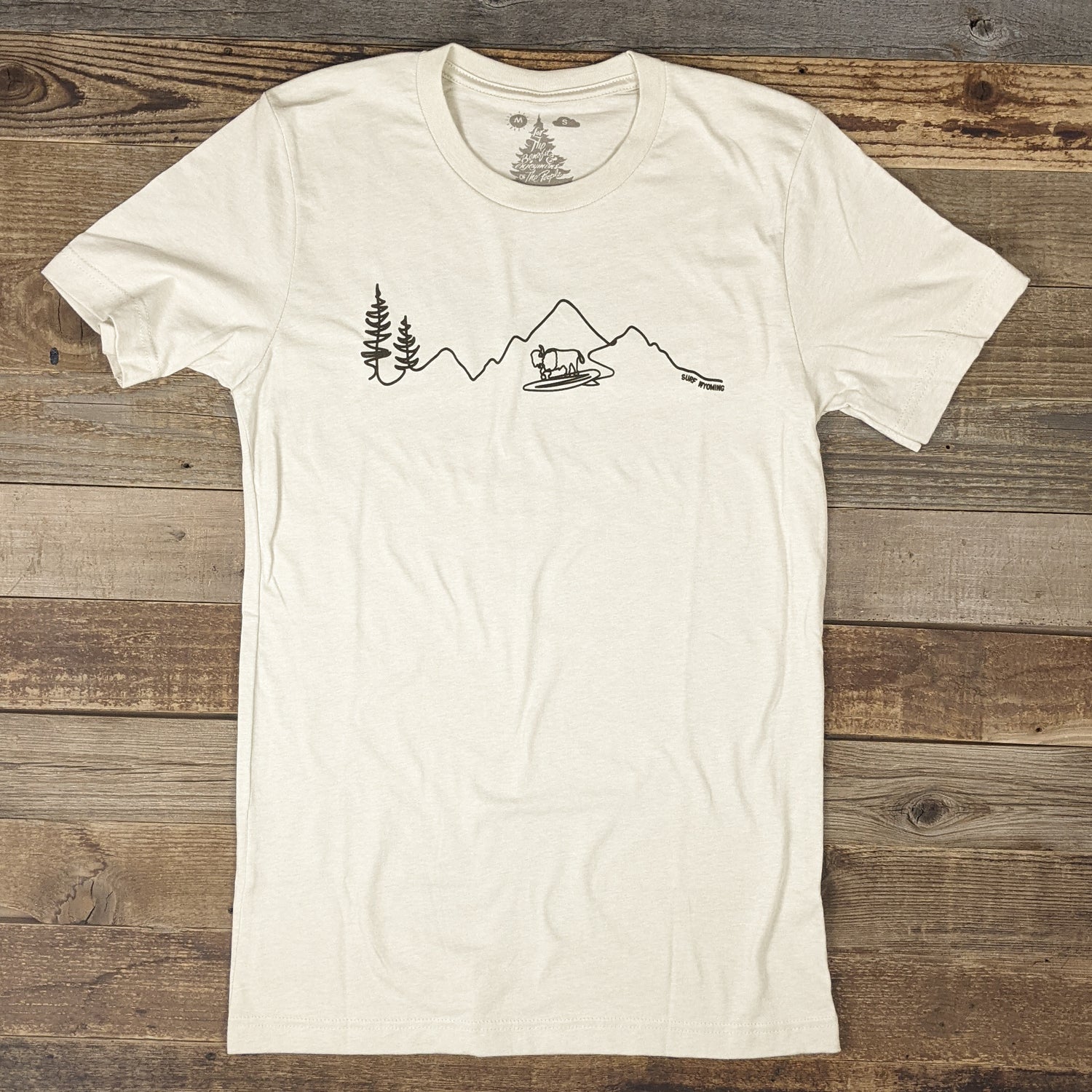 Surf Wyoming’s iconic bison in a minimalist approach in our super comfy, broken-in combed cotton/poly jersey, a 60/40 blend which is both preshrunk and fitted.