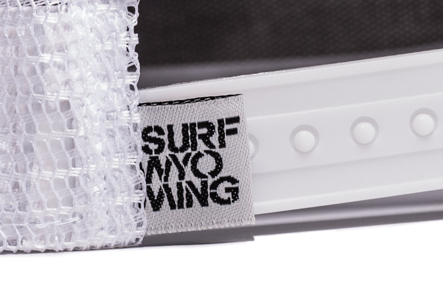 Our Surf Wyoming structured Oxford cap has a 5-panel low crown front, full white mesh trucker back and a white, one-size-fits most snapback/adjustable closure.