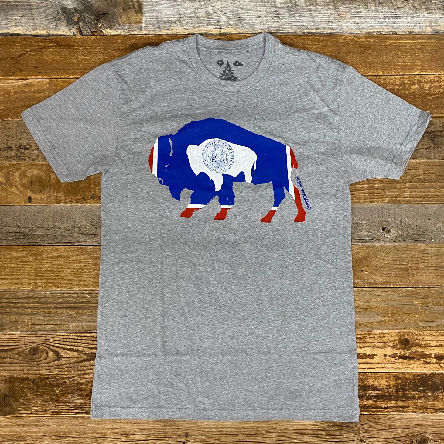 Men's Surf Wyoming® Flag Bison Tee - Heather Grey