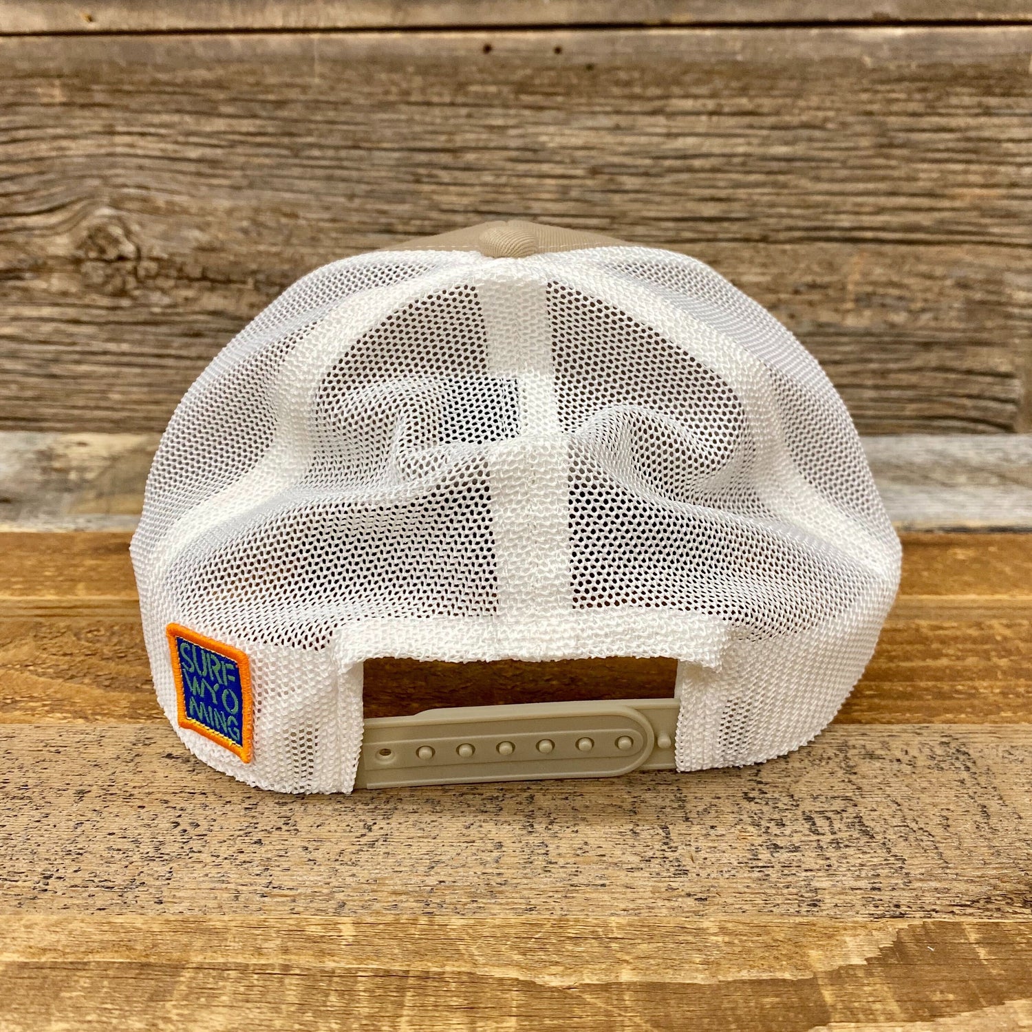 Our Surf Wyoming Prismatic Bison Trucker has a 2-panel structured low crown, full mesh back and a one-size-fits most adjustable closure. Custom designed with a slightly curved bill for a comfy and natural worn-in look and complete with our offset, raised jewel-stitch Surf Wyoming Prismatic bison logo.