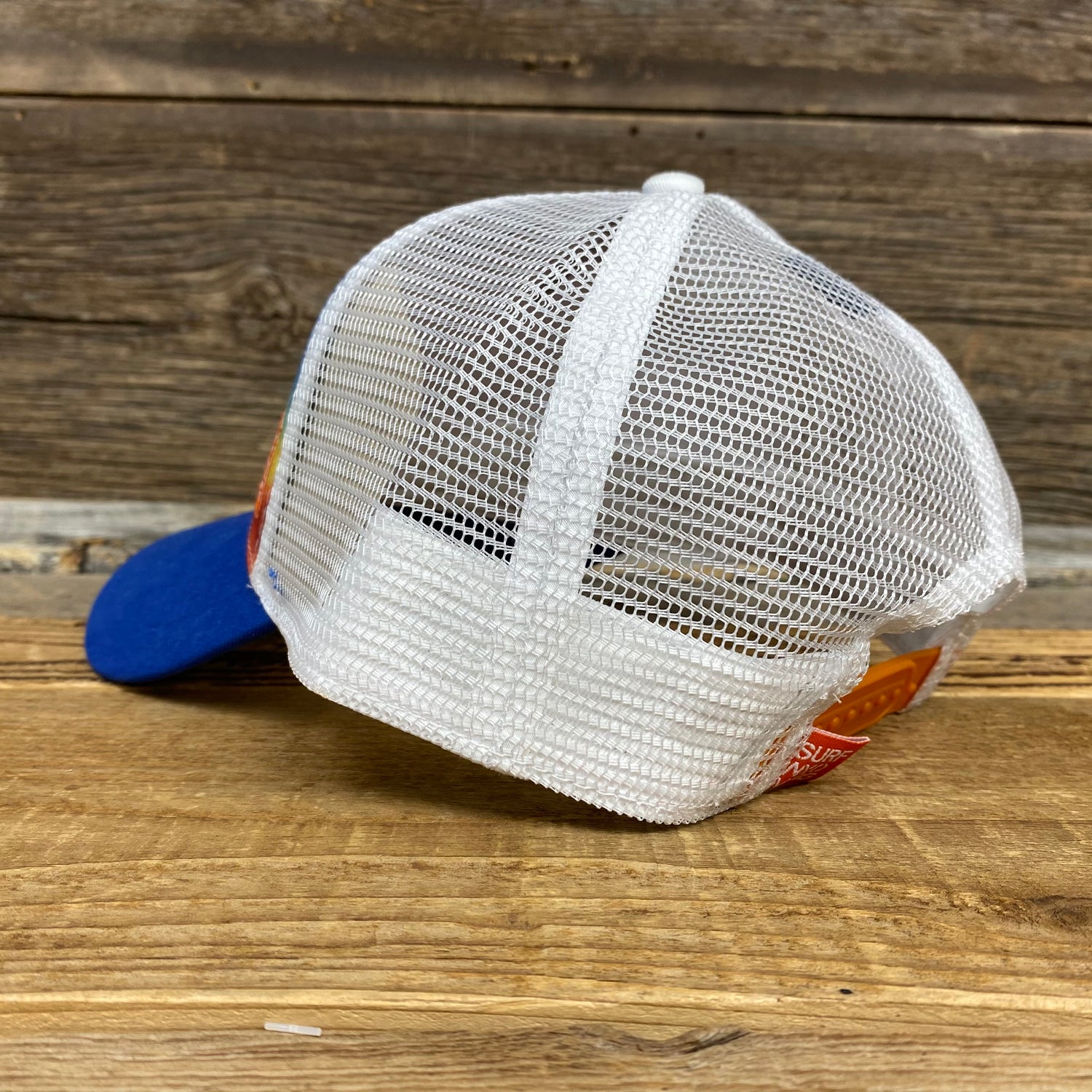 Surf Wyoming® caps are all custom designed and this structured Prismatic trucker utilizes a cotton/twill, single front panel crown alongside a full mesh trucker back.