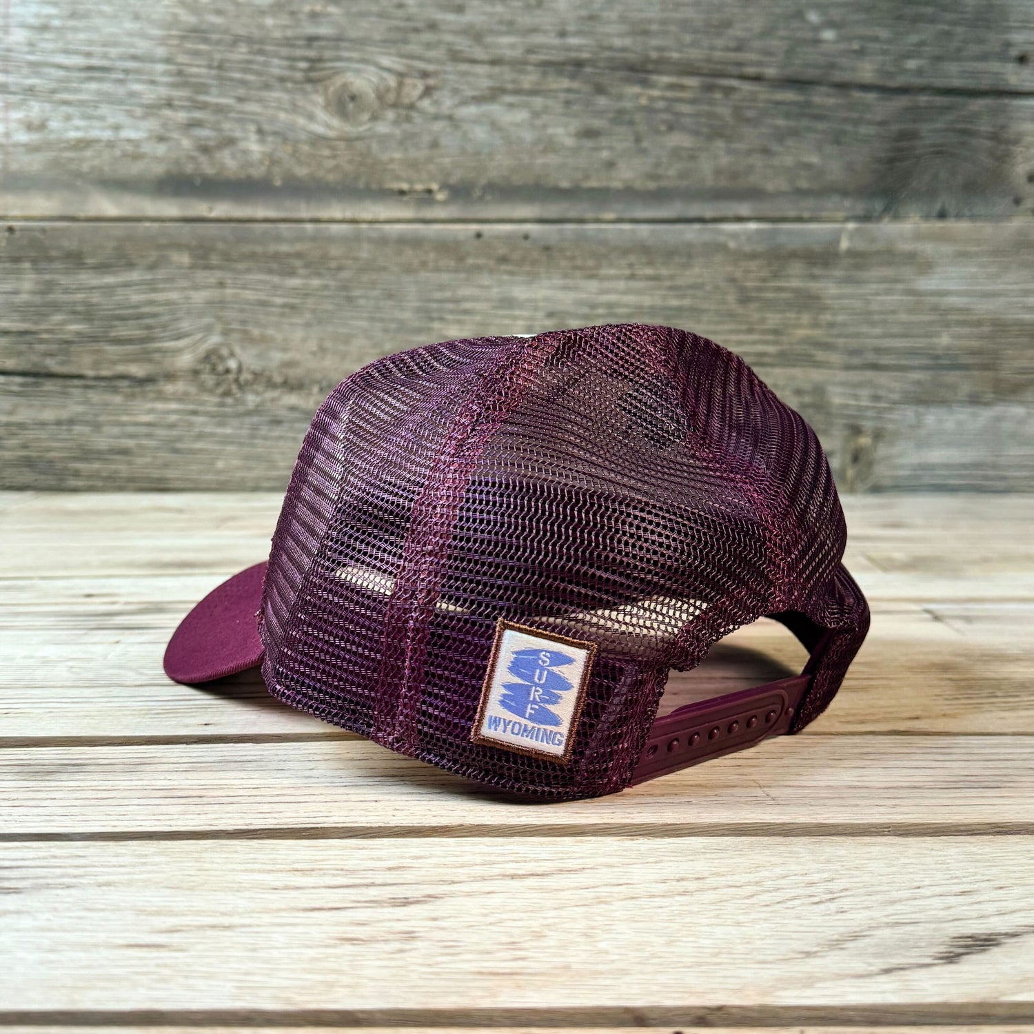 Our Geeode Bison Trucker has a 2-panel low crown, full mesh back and a one-size-fits most adjustable closure. Custom designed with a slightly curved bill for a comfy and natural worn-in look and complete with our offset, merrowed Surf Wyoming Geeode bison logo patch on the front panel.