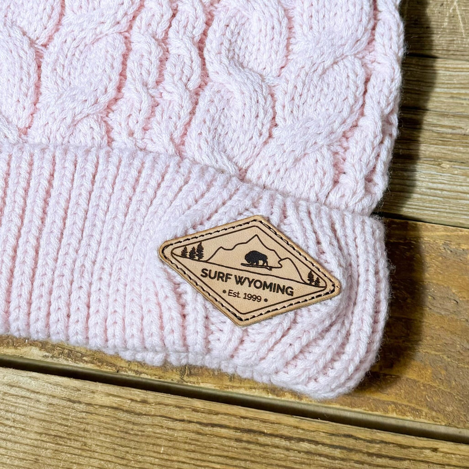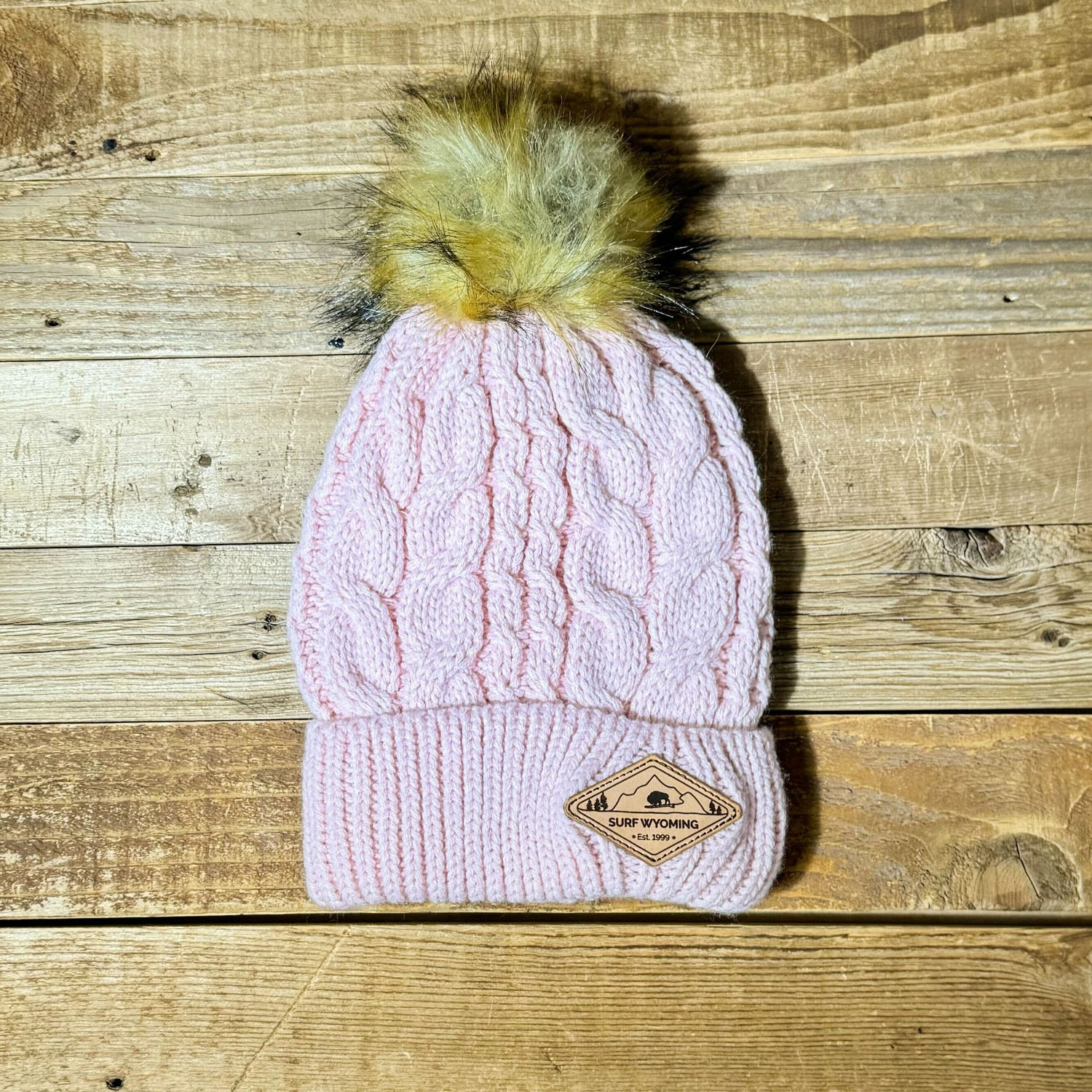 Surf Wyoming® Diamond Leather Patch Pom Beanie • Pink