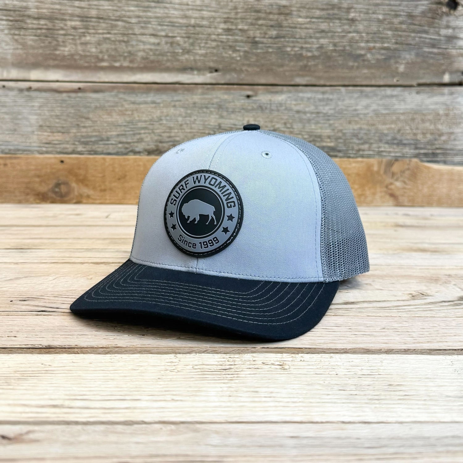 Surf Wyoming® Solid Bison Longboard PVC Patch Trucker - Grey/Charcoal/Black