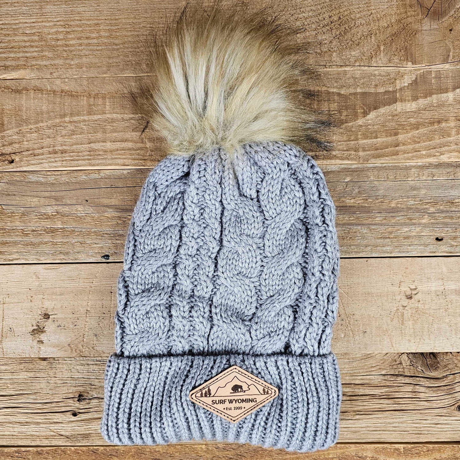 Surf Wyoming® Diamond Leather Patch Pom Beanie • Grey