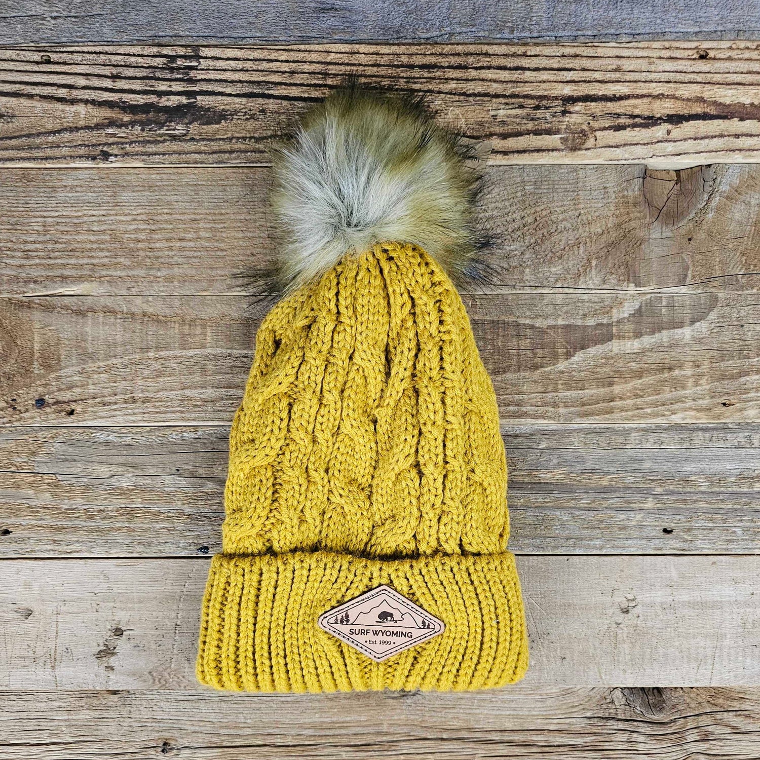 Surf Wyoming® Diamond Leather Patch Tobaggan Pom • Mustard