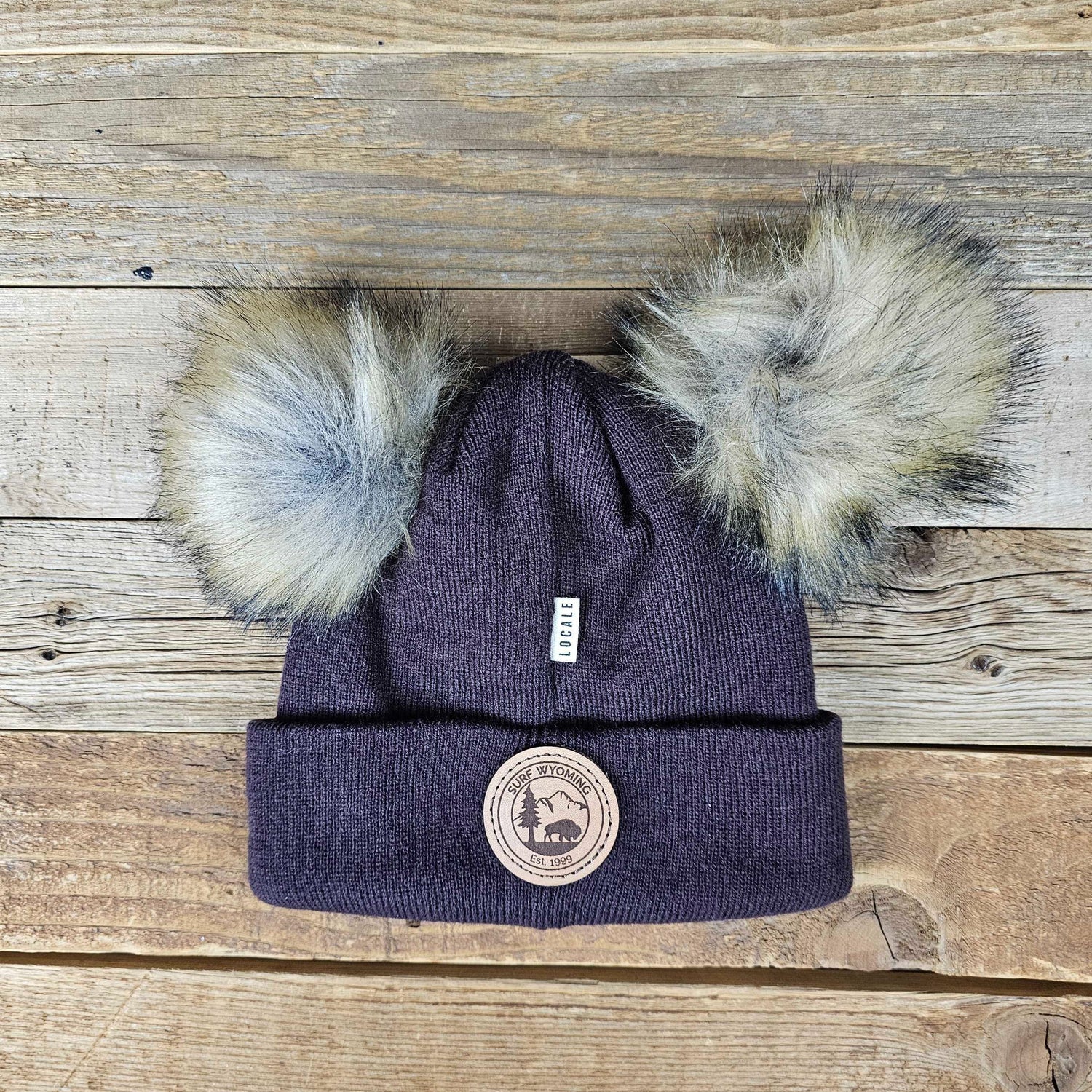 Surf Wyoming® Youth Bear Cub Double Pom Beanie • Chocolate