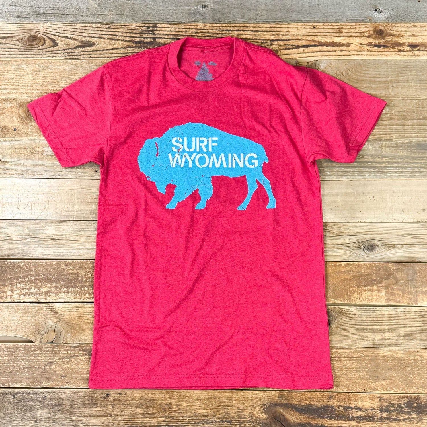 Unisex Surf Wyoming® Ice Blue Bison Logo Tee - Suess Red