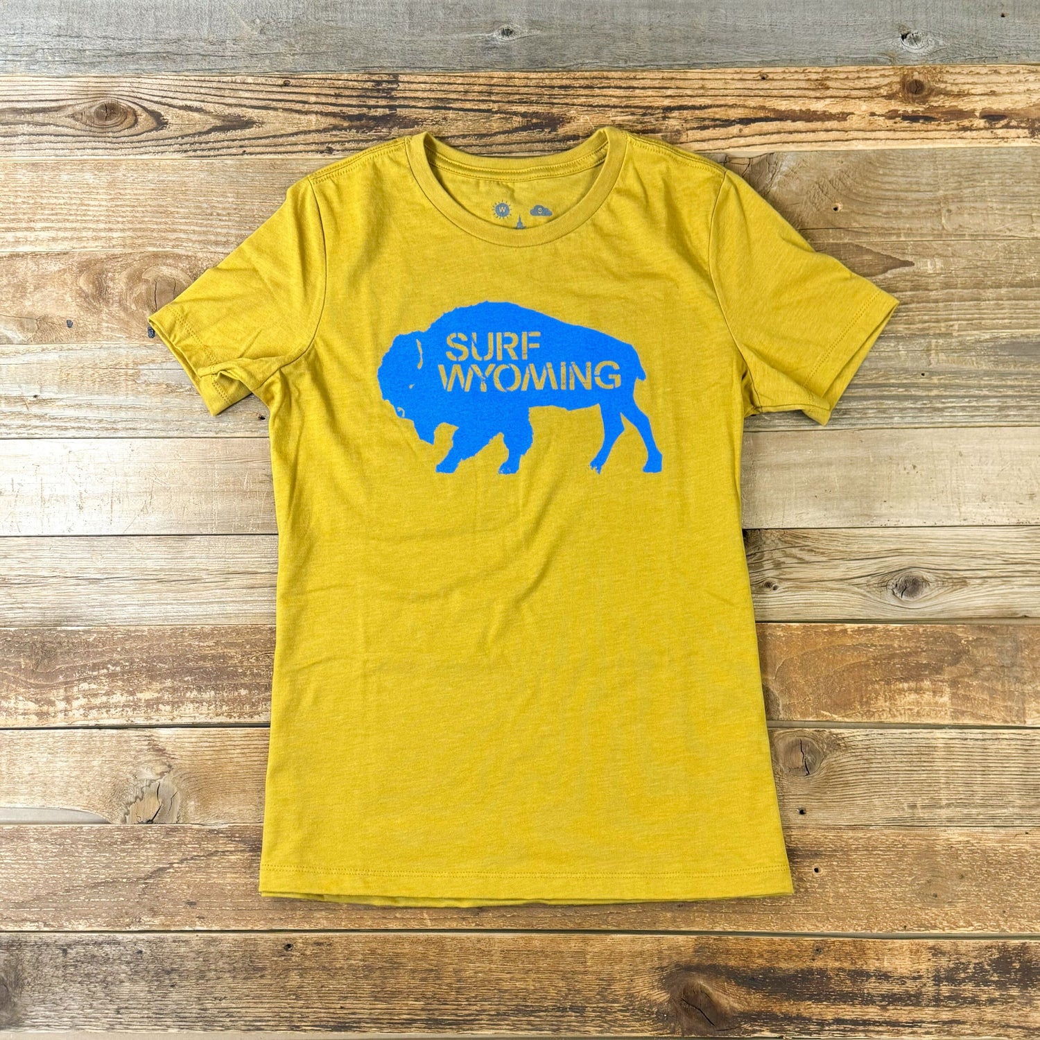 Women's Surf Wyoming® Retro Blue Bison Logo Relaxed Tee - Mustard