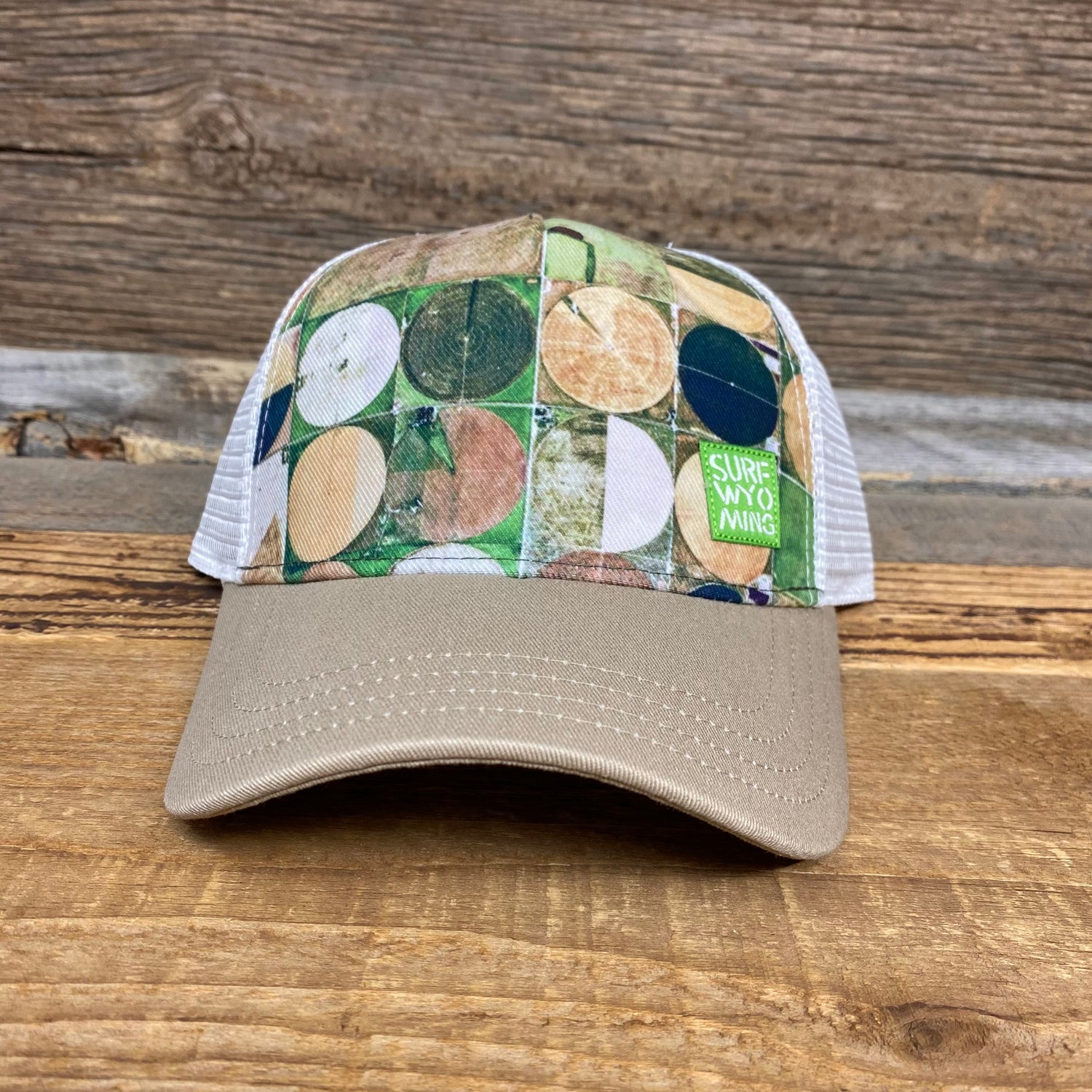 Our slightly curved tan bill uses tonal stitch and allows for full-fledged cootering or a comfy and natural worn-in look and feel. Surf Wyoming's woven label is offset on the front panel in green and is also located in the interior headband and on the fully adjustable rear snapback which conveniently comes in a one-size-to-fit-most.